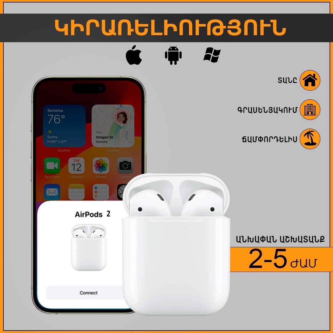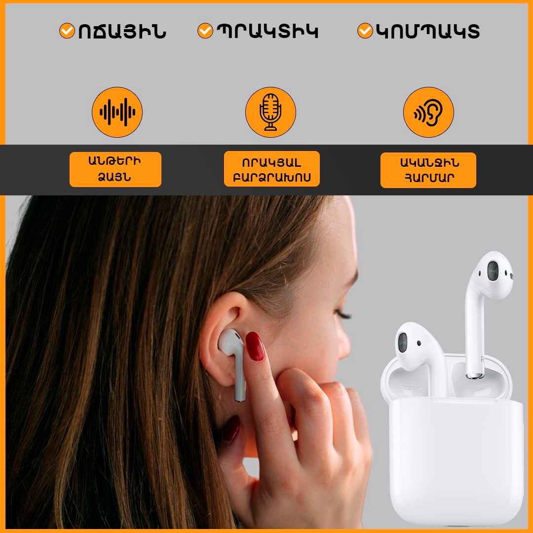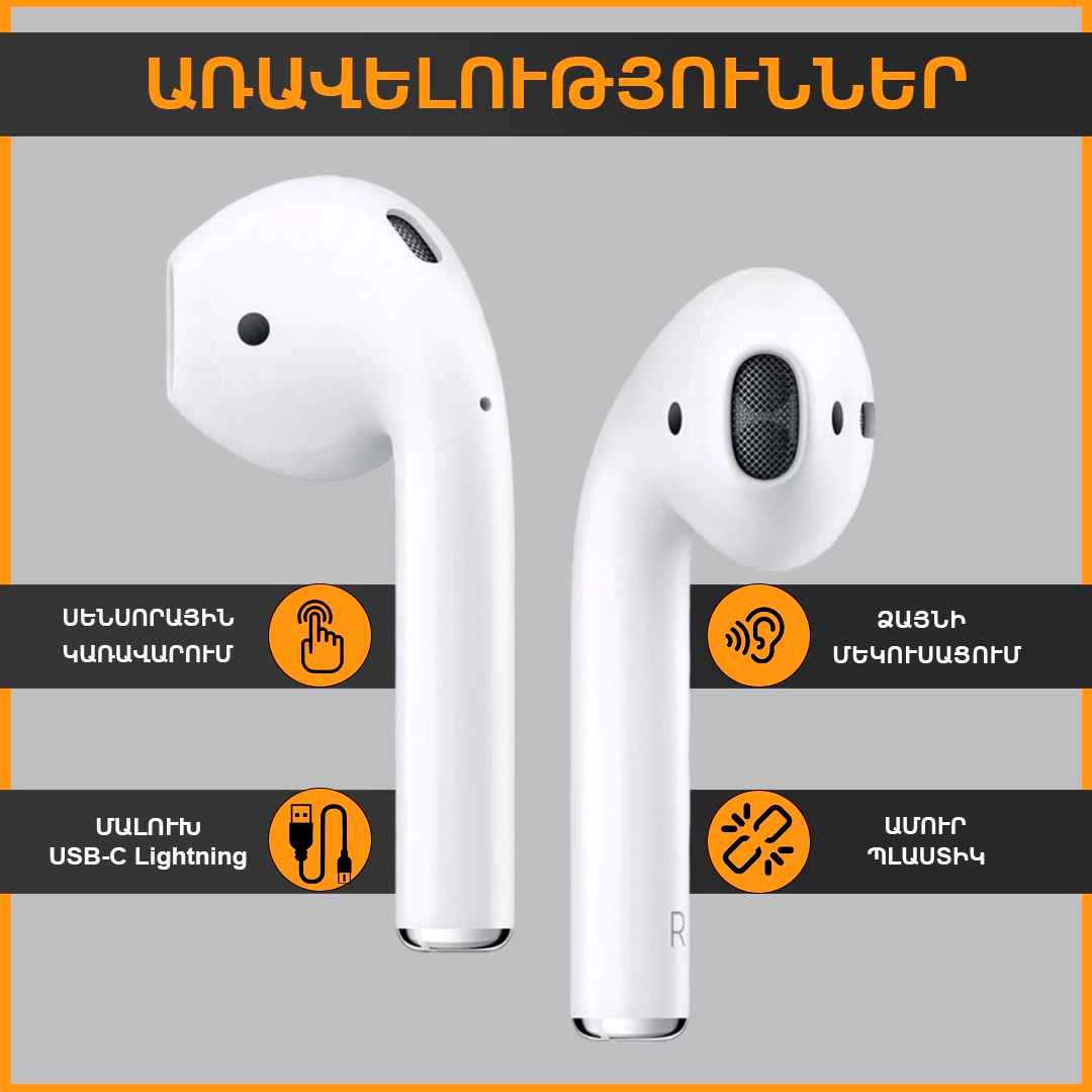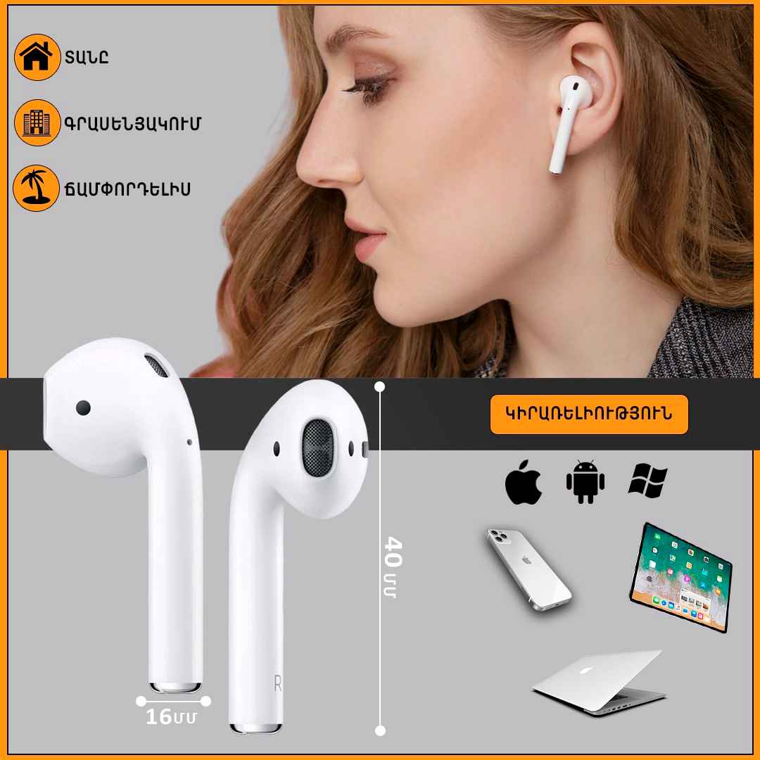 Լավագույն որակի անլար ականջակալը Իր տեսակների մեջ Luxury որակ Օրիգինալից չտարբերվող Որակյալ հնչողություն Սենսորային կառավարում Գերազանց միկրոֆոն Աշխատանք։ 5 ժամ Գույն։ Սպիտակ Սնուցում։ Lightning